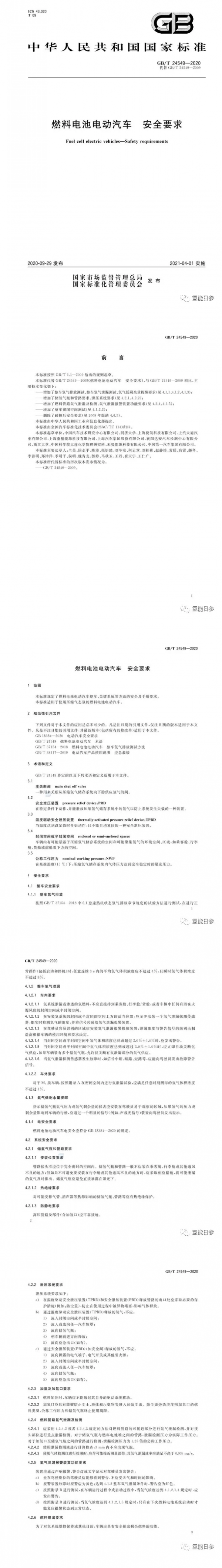 近日,《燃料電池電動汽車 安全要求》(GB/T 24549-2020)國標(biāo)正式發(fā)布。該標(biāo)準(zhǔn)用來代替《燃料電池電動汽車 安全要求》(GB/T 24549-2009)舊國標(biāo)。