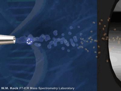 FT-ICR質(zhì)譜的分析器是一個具有均勻(超導(dǎo))磁場的空腔,離子在垂直于磁場的圓形軌道上作回旋運動,回旋頻率僅與磁場強(qiáng)度和離子的質(zhì)荷比有關(guān),因此可以分離不同質(zhì)荷比的離子,并得到質(zhì)荷比相關(guān)的圖譜。