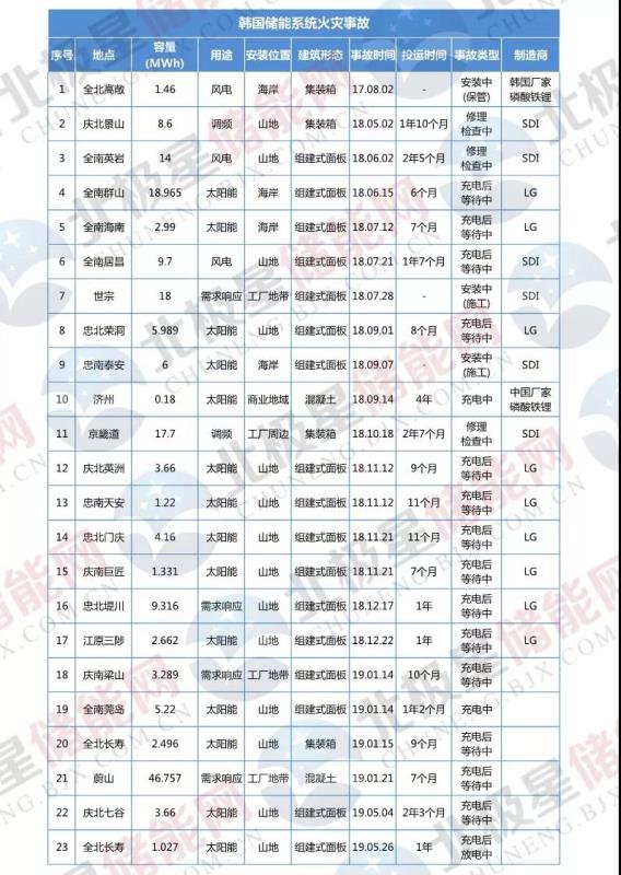 韓國政府公布23起儲(chǔ)能電站火災(zāi)事故調(diào)查結(jié)果 并提出四大改善措施