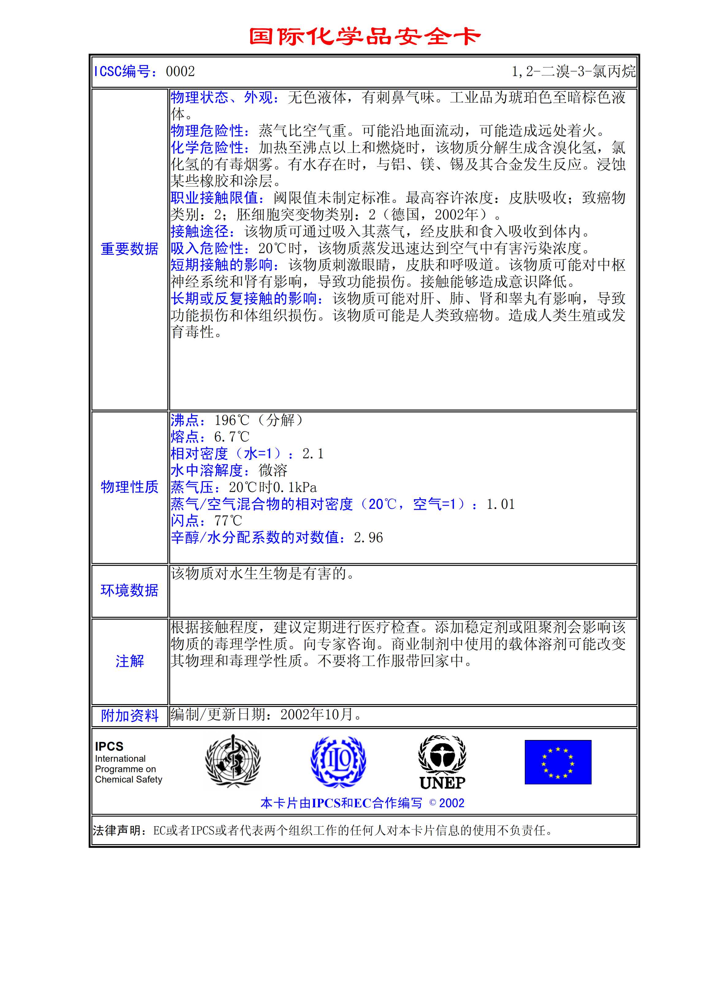 1,2- 二溴-3-氯丙烷 MSDS