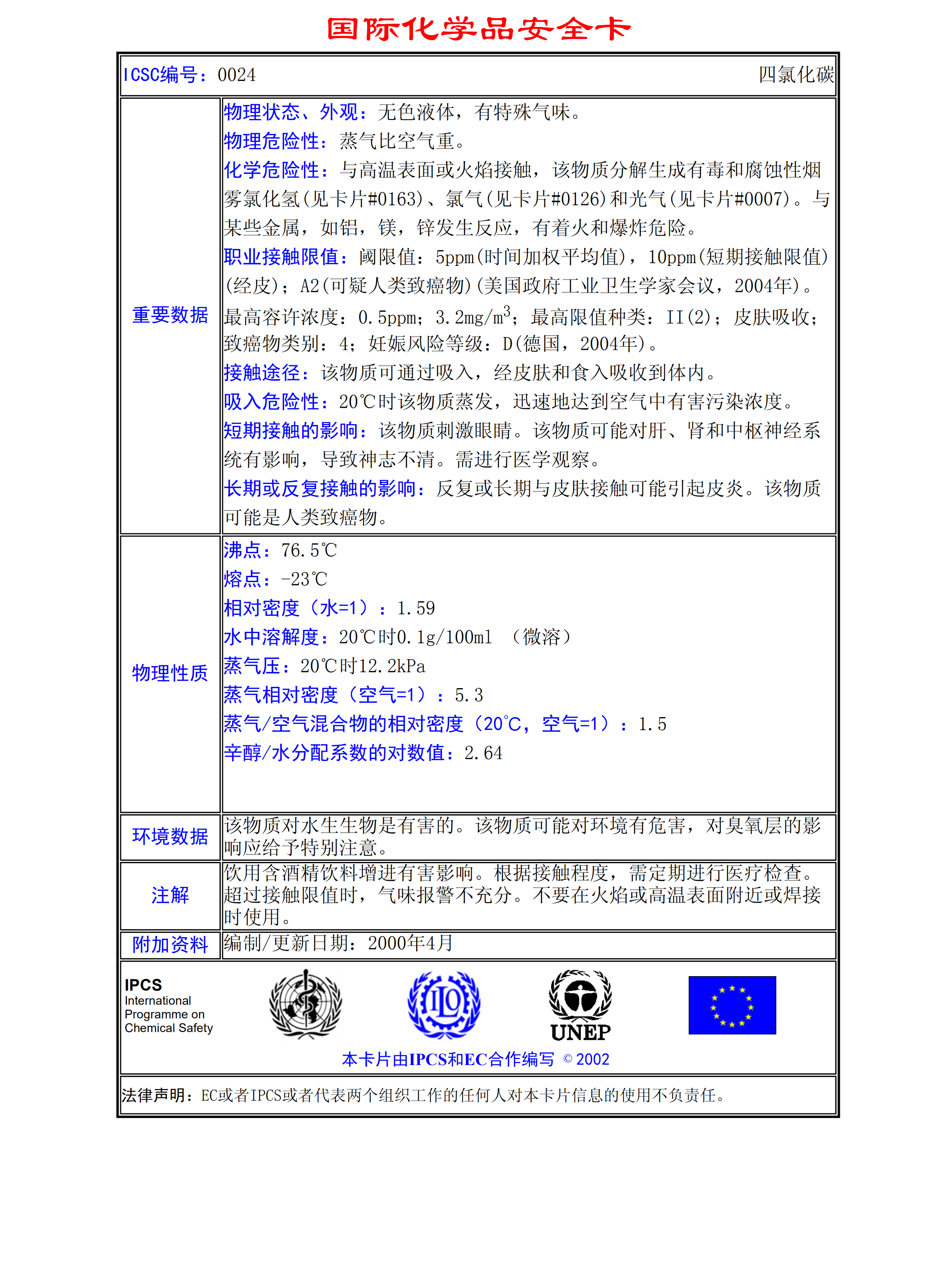 四氯化碳MSDS