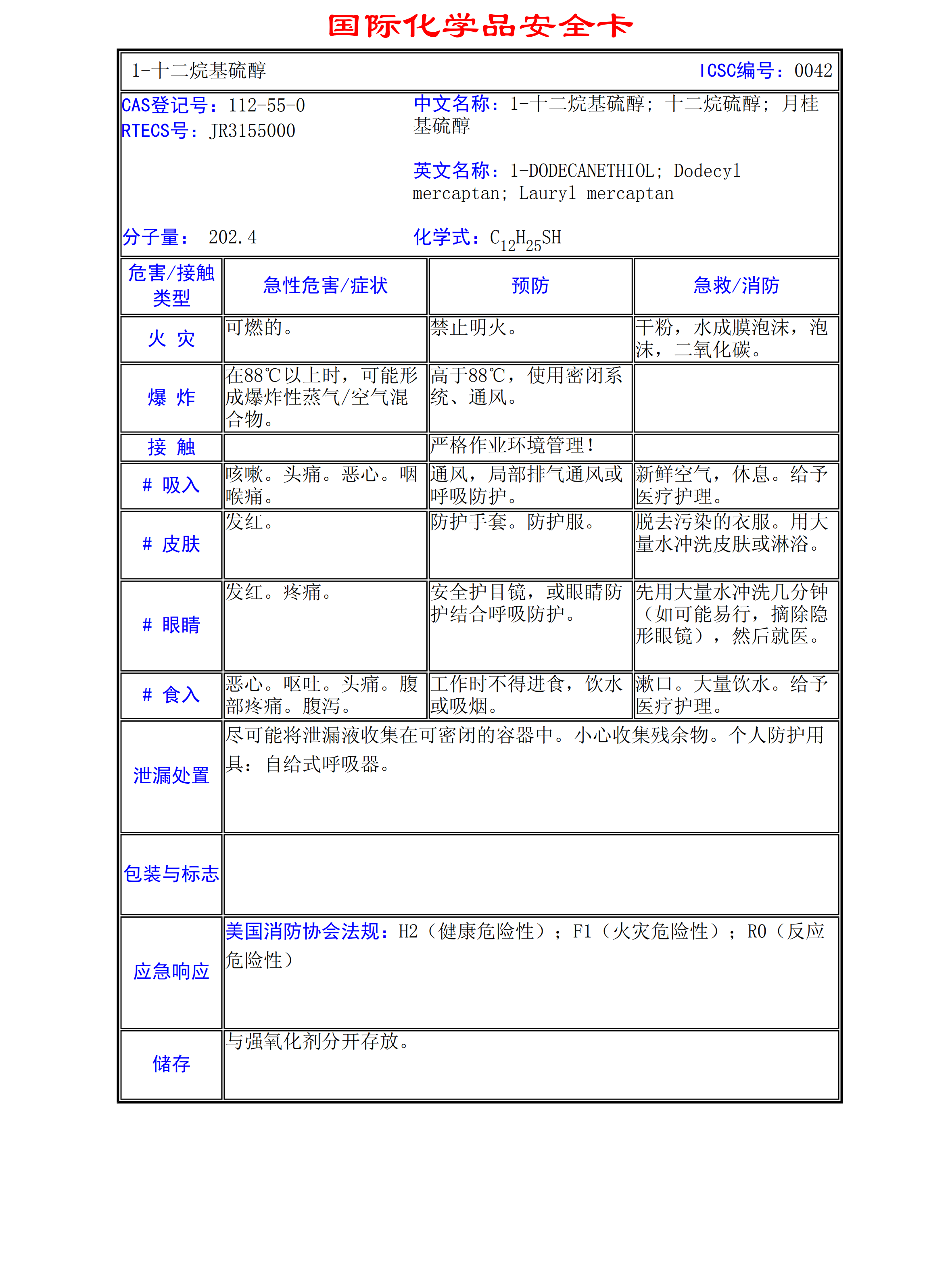 1-十二烷基硫醇MSDS