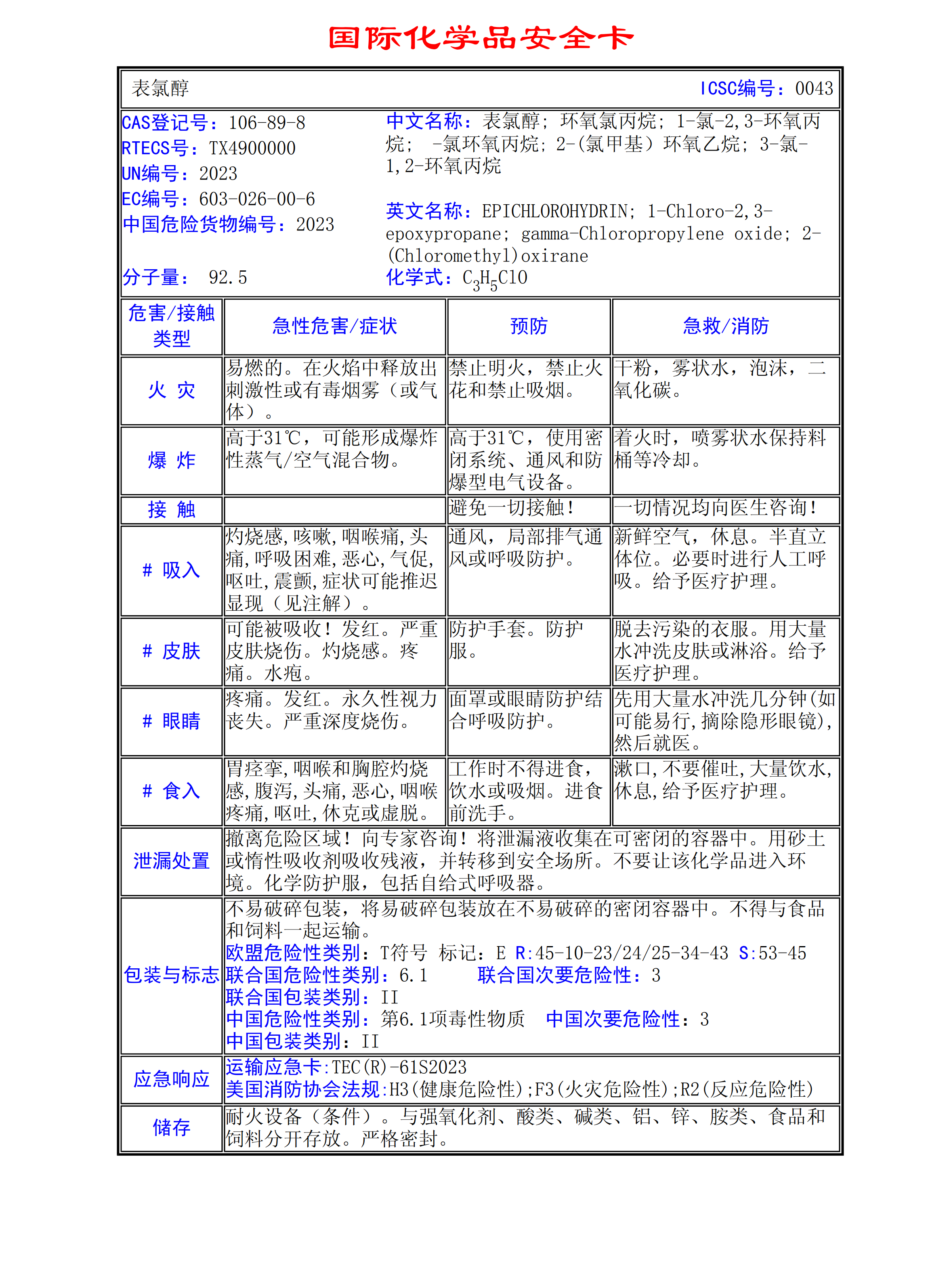 表氯醇MSDS