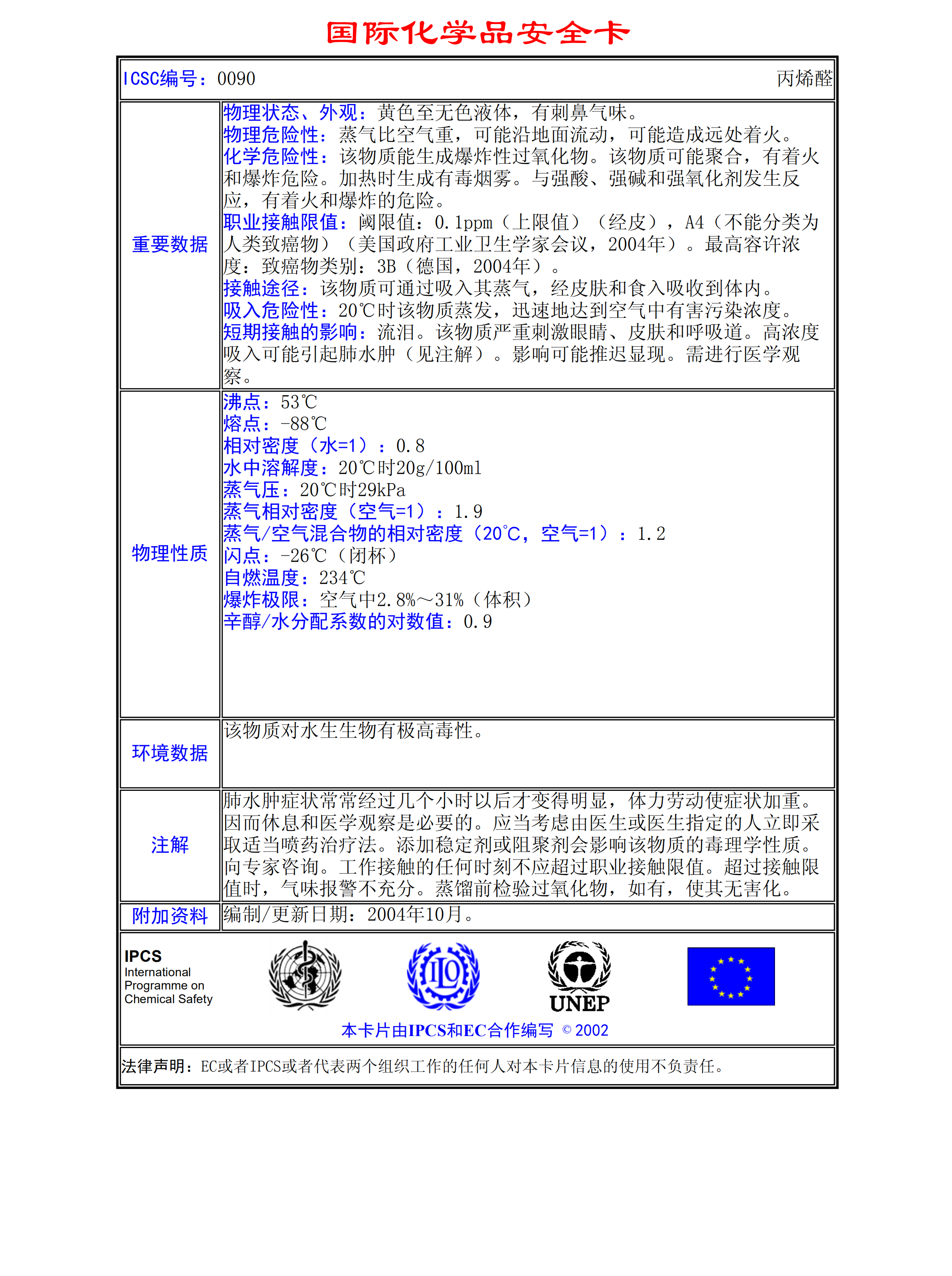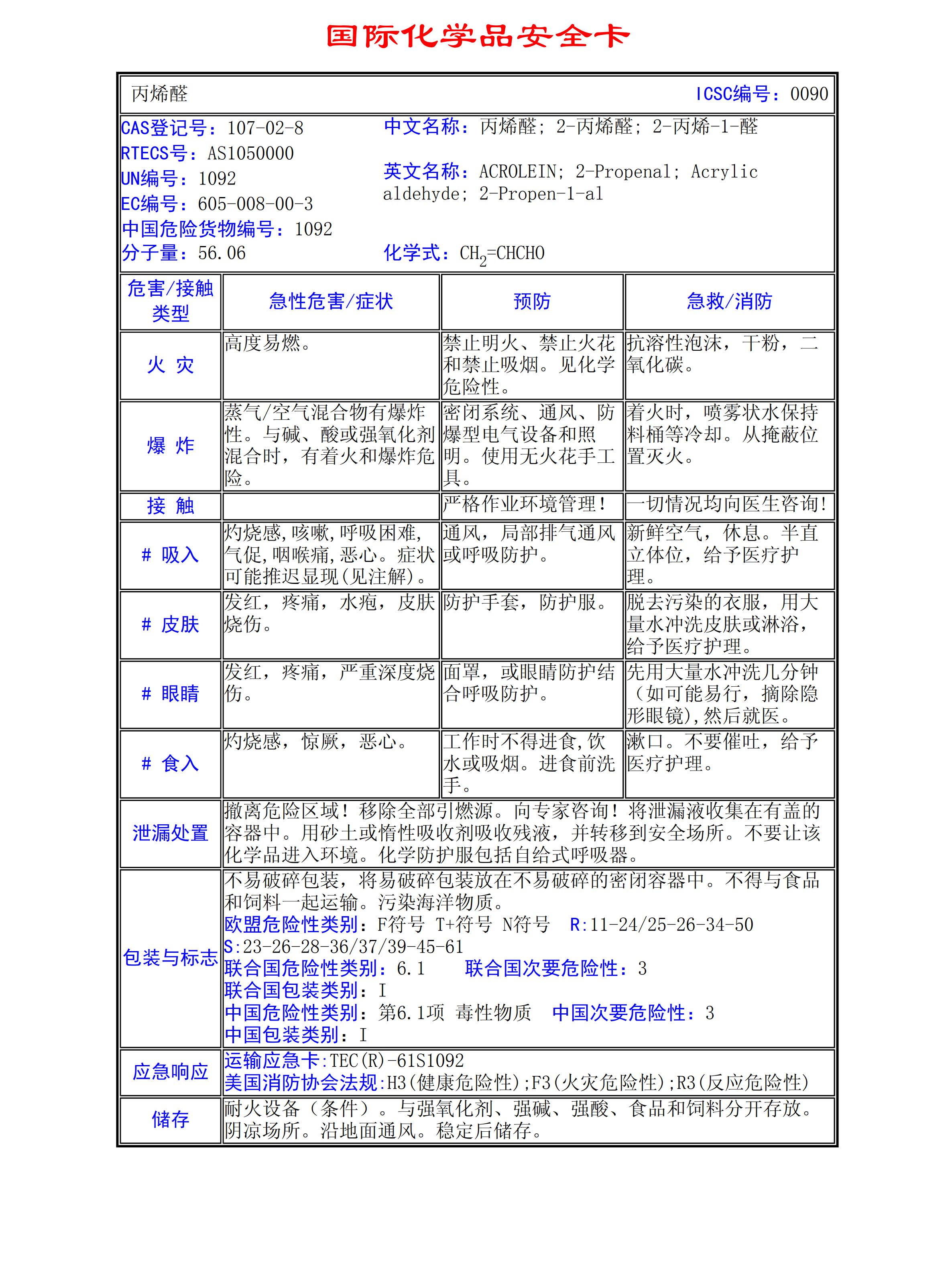 丙烯醛MSDS