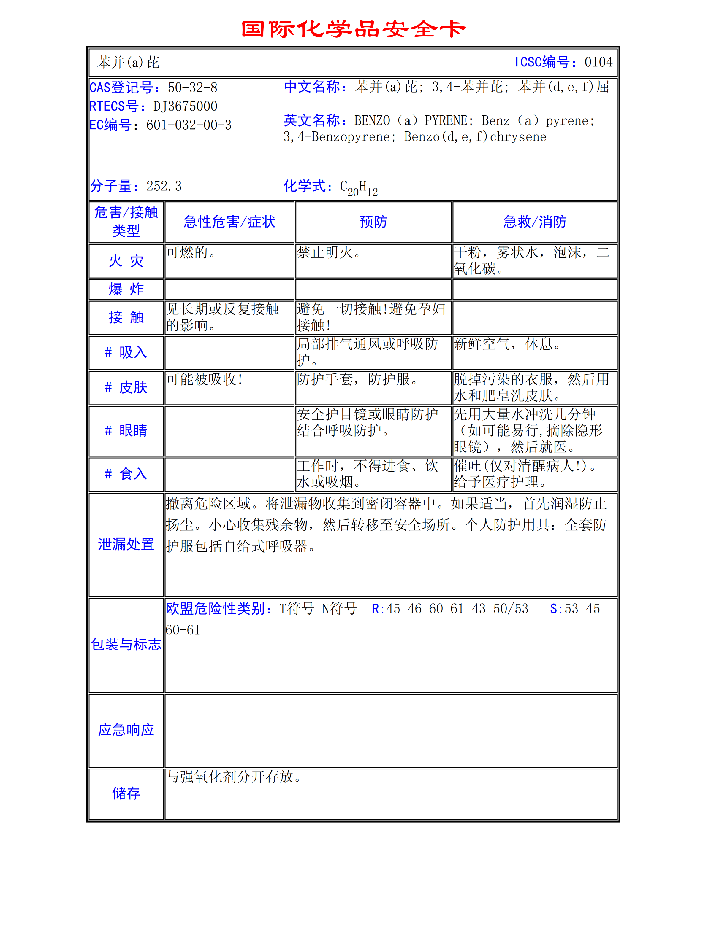 苯并芘MSDS