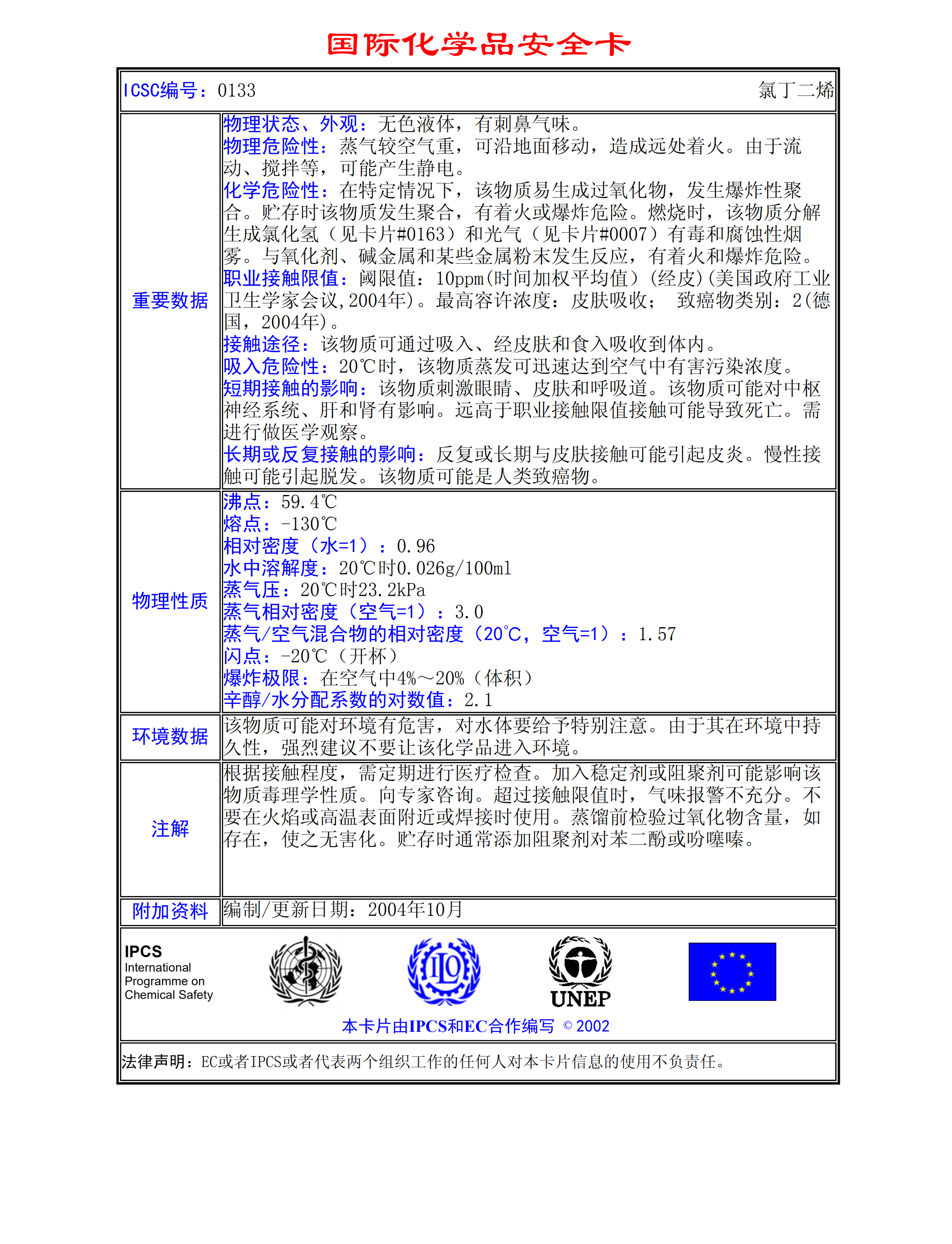 氯丁二烯MSDS
