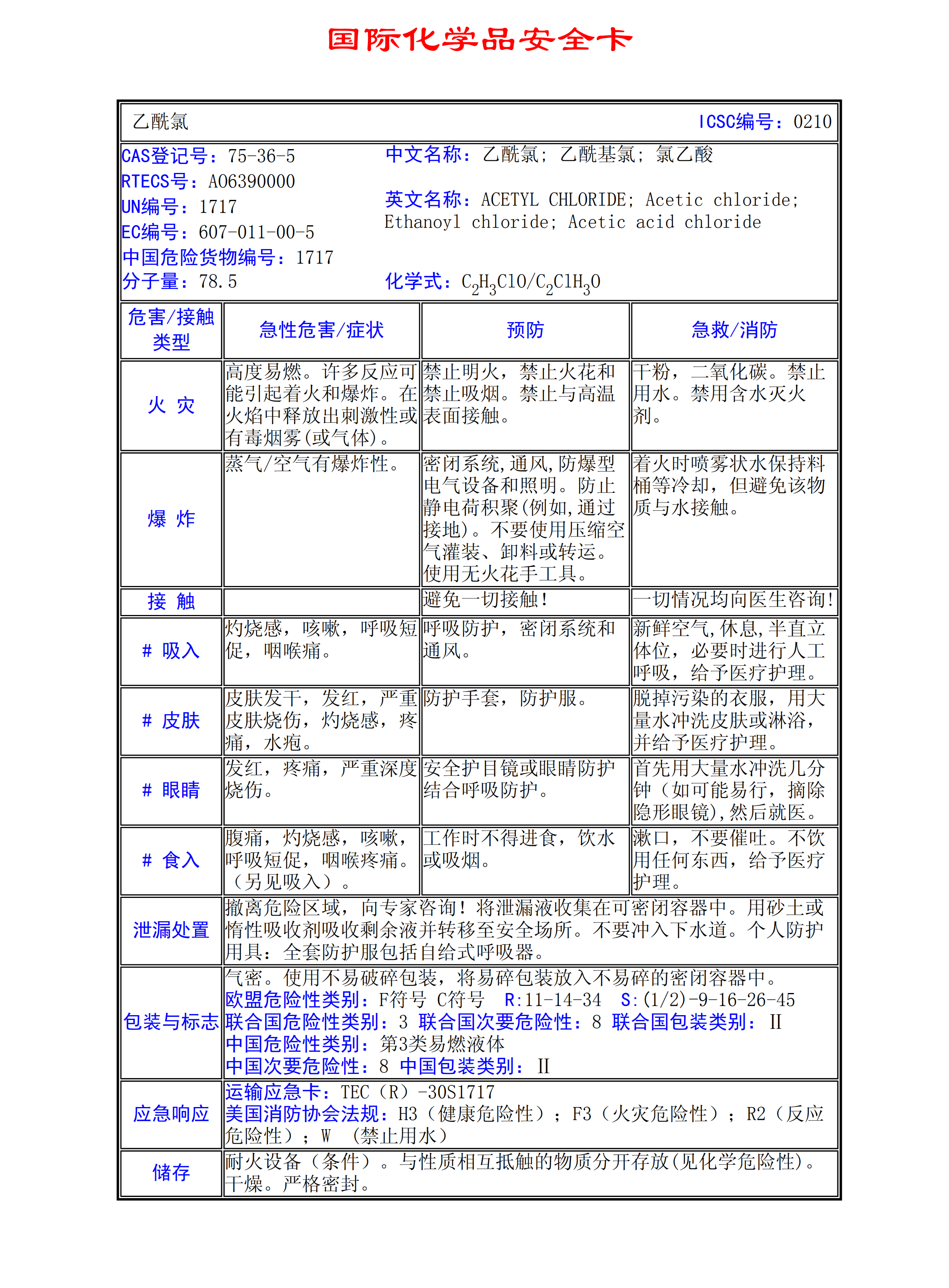 乙酰氯MSDS