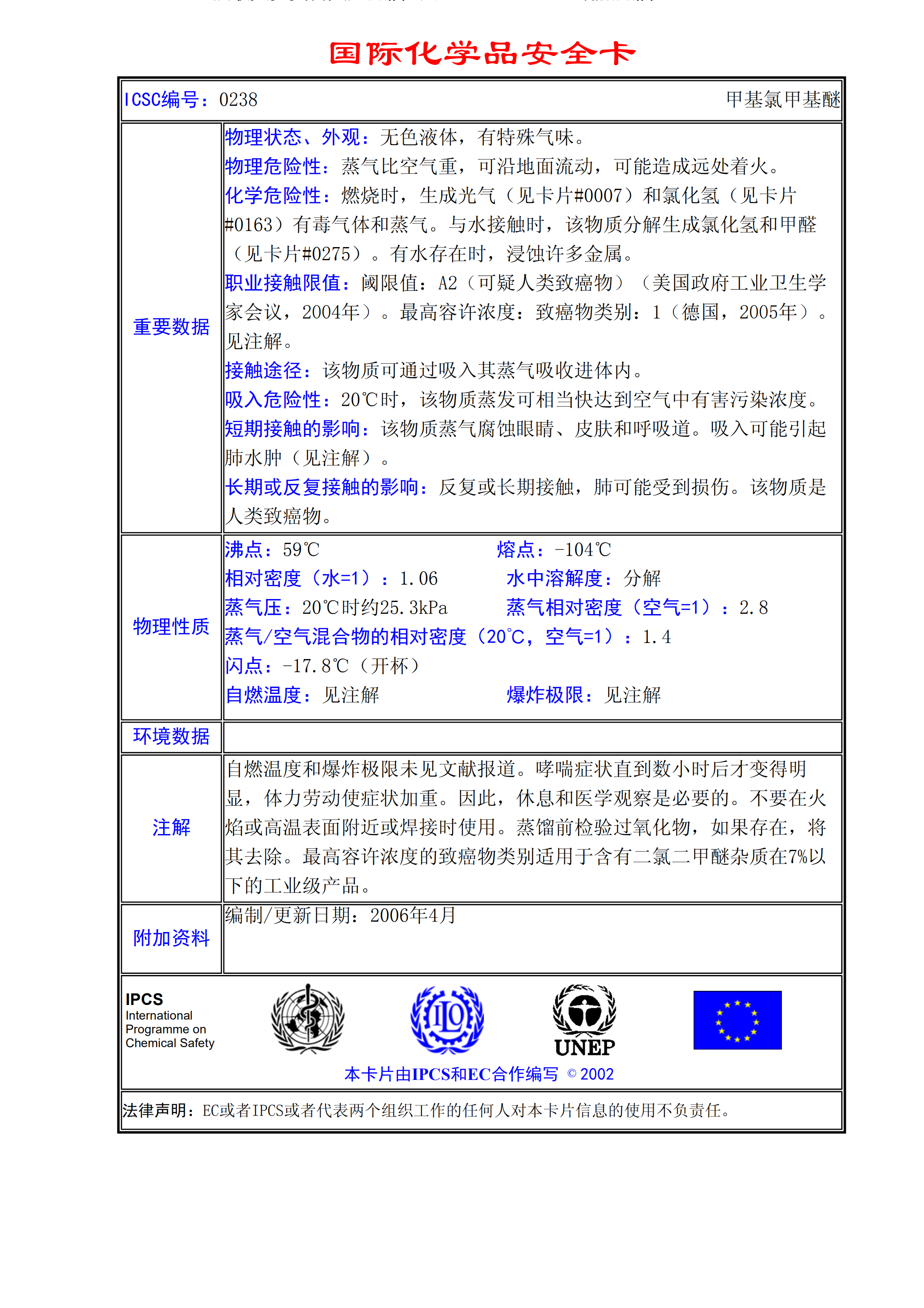 二氯甲基醚MSDS