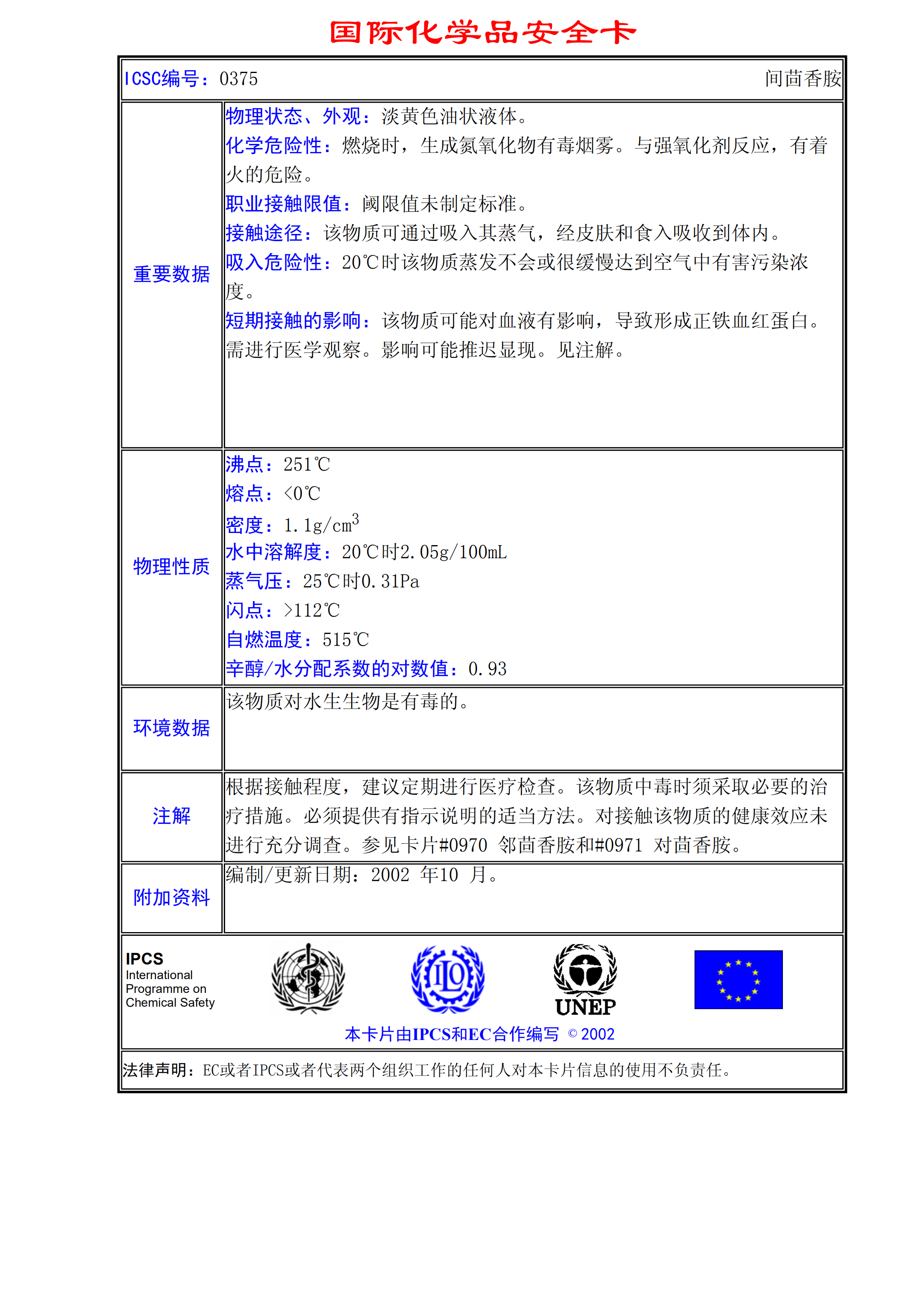 間茴香胺MSDS
