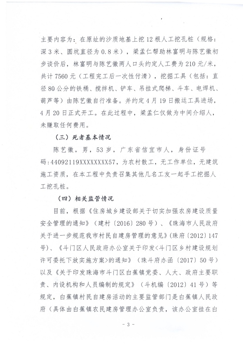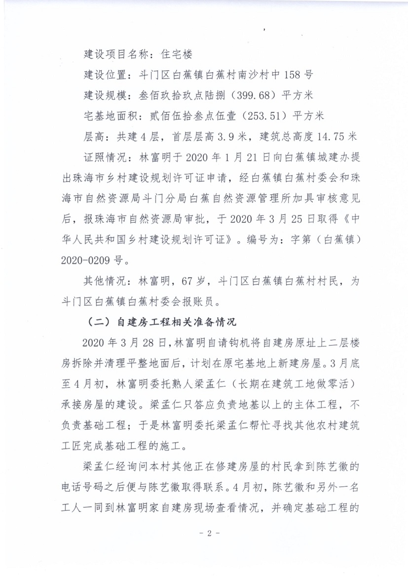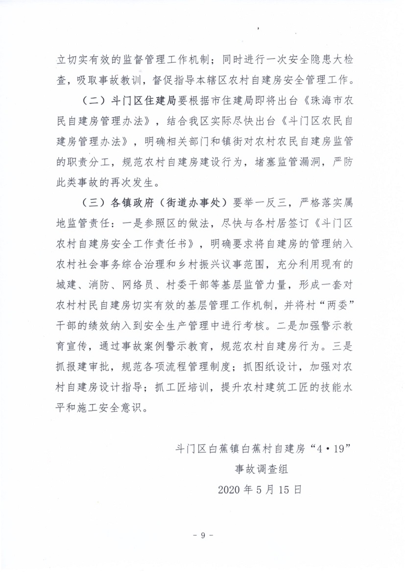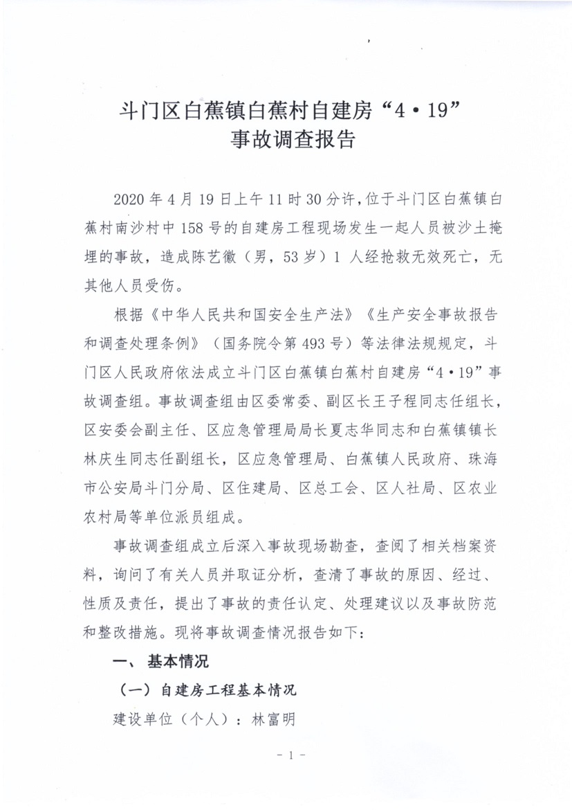 斗門區(qū)白蕉鎮(zhèn)白蕉村自建房“4·19”事故調查報告