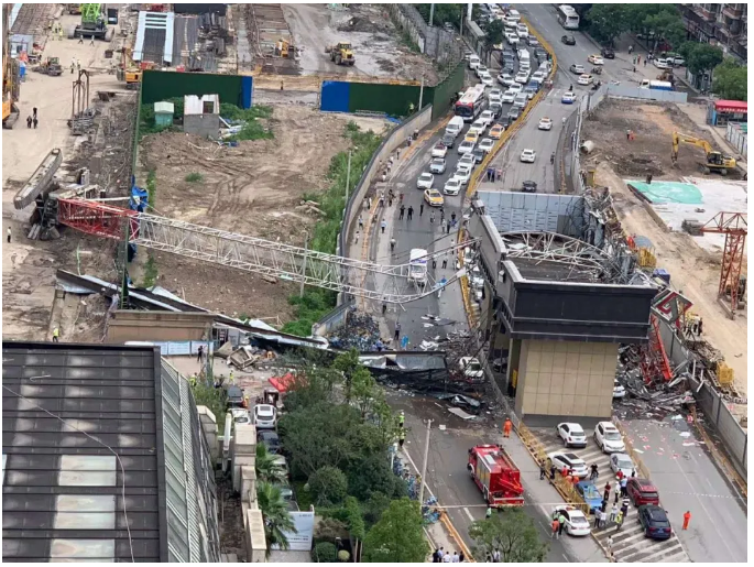突發(fā)!起吊鋼筋籠時(shí),工地履帶吊突然側(cè)翻砸中行駛車(chē)輛