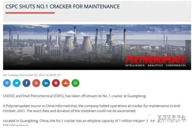 據(jù)消息人士透露,該裂解裝置目前已下線,并將進(jìn)行持續(xù)一周的維護(hù),殼牌已經(jīng)告知部分乙烯和丙烯買(mǎi)家供應(yīng)減少。